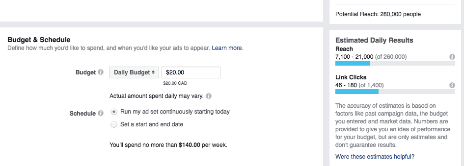 Aussi, les performances des publicités (entre autres la portée) dépendent beaucoup de la pertinence de celle-ci et de son ciblage. D’ailleurs, il n’est pas si simple de multiplier la portée quotidienne. On se sert surtout de cette métrique pour se faire une meilleure idée du budget approximatif. Celui-ci devra évidemment être optimisé en cours de route selon les performances de la campagne.