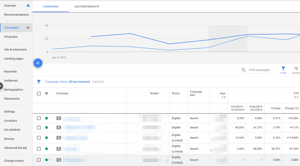 Comme on peut le voir, la baisse est arrivée vers le 3 avril après le 2e pic. On pourrait débattre que le taux de clic s’est stabilisé, mais pour les besoins de l’exercice, allons tenter de déterminer la raison.