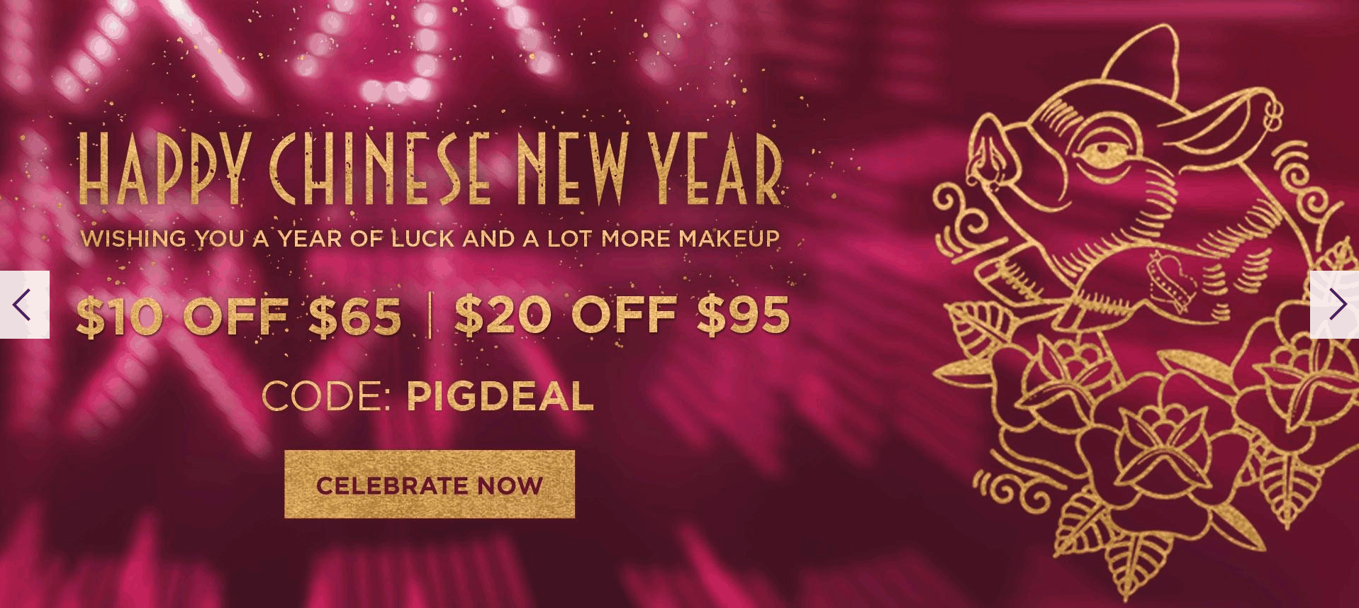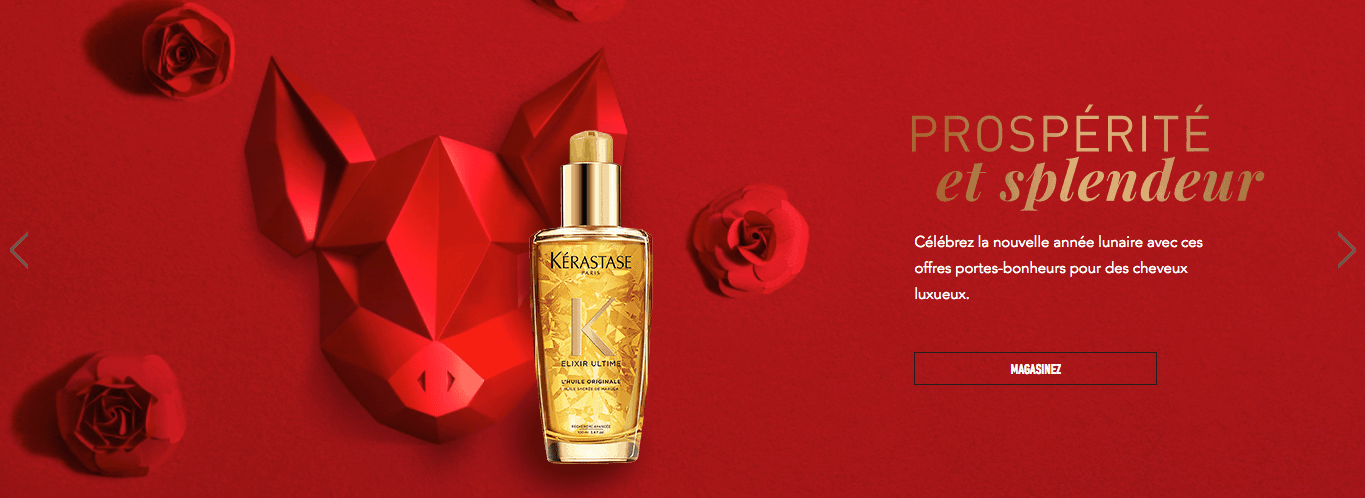 Remarquez l’utilisation de visuels marquants complètement appropriés pour le thème du nouvel an chinois. C’est le moment de sortir le rouge et le doré et de parler de chance !