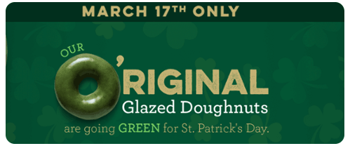 Mettez en avant votre sens de l’humour en rendant votre page d’accueil verte pour la journée. Vous pouvez aussi créer un produit saisonnier (vert, comme Krispy Kreme) ou appliquer un rabais sur vos produits vert. Ou encore, ne changez rien à vos produits et services: envoyez une infolettre ou publiez un créatif en ligne. Restez sur la thématique et faites un jeux de mot avec la chance. On veut vraiment juste faire parti du party !