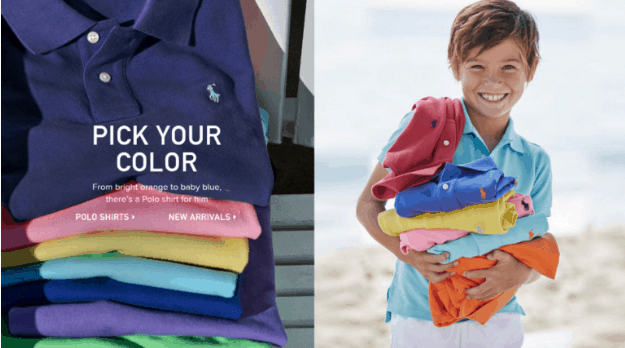Ici, Ralph Lauren nous montre l’exemple tout simple d’un visuel en thème sur le printemps grâce à son usage de couleur fraîches. « Pick your color«