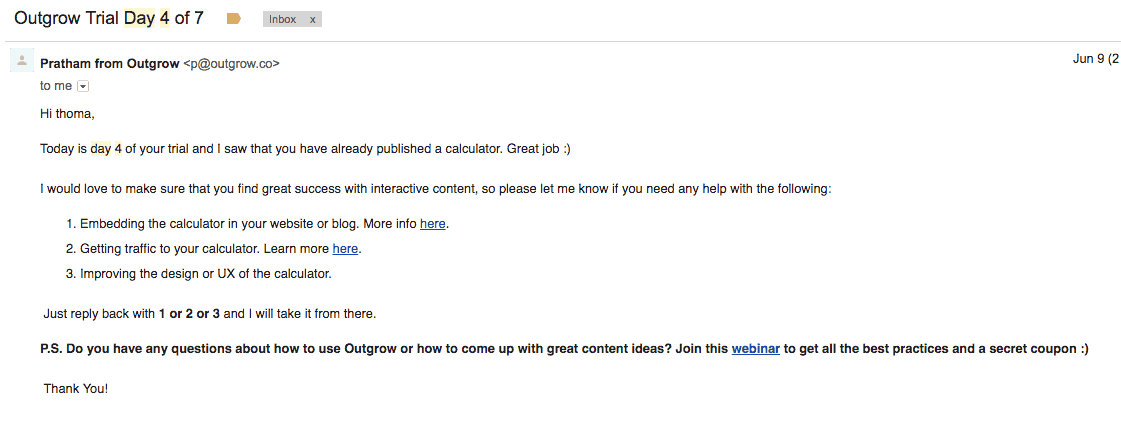 Voici un exemple très intéressant de Outgrow: