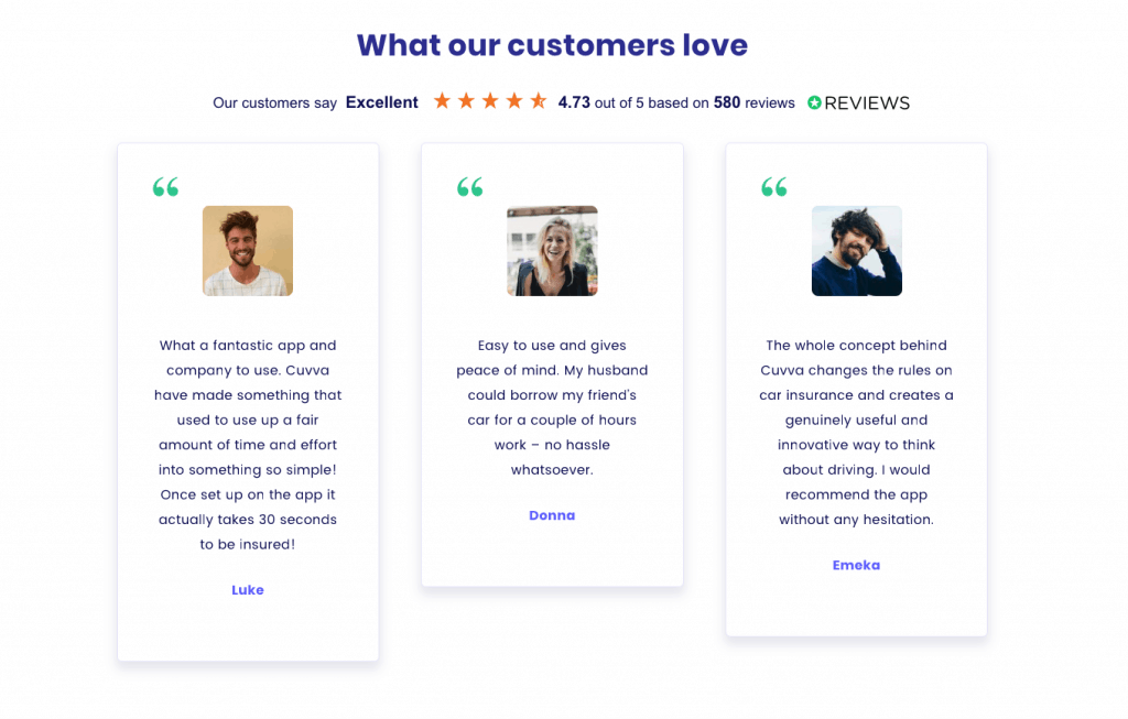 En tant que client de sites d’achats, vous regardez probablement les avis d’autres acheteurs avant de mettre la main au portefeuille. C’est la même chose pour vos clients! Rien de tel que le témoignage d’un autre client pour finir de convaincre un client potentiel de l’utilité de votre produit/service. Il est fortement recommandé de mettre une photo ainsi qu’une citation, ainsi les visiteurs de votre page s’identifieront plus facilement. Prenez également en compte que la citation ne doit pas seulement être une déclaration d’amour à votre compagnie (« L’entreprise xxx est mon entreprise préférée! »). Elle doit témoigner ce que vos clients aiment dans votre produit/service (« J’aime la simplicité de l’interface de xxx. ») et/ou la façon dont votre produit/service les a aidé (« Grâce à xxx, j’ai bien plus de temps pour moi »).